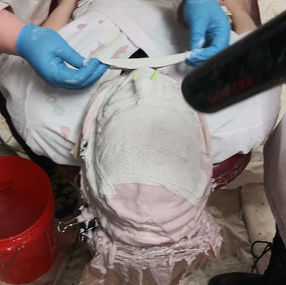 Once the plaster bandage support mold is dry then it can be gently lifted off the face and then filled with a mixture of Hydro-Cal to create the final bust,